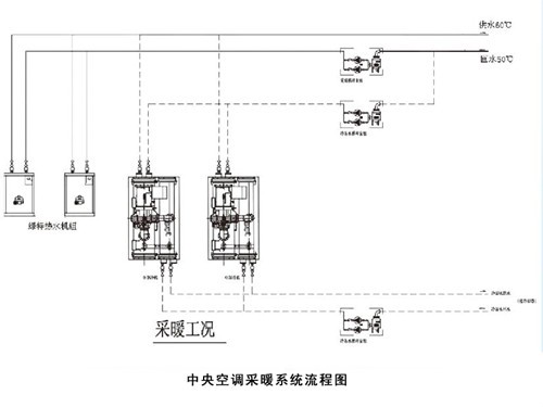中央空調(diào)采暖是利用綠特中央熱水機組對中央空調(diào)系統(tǒng)進行熱水供應,末端為風機盤管。中央空調(diào)采暖系統(tǒng)一般是與中央空調(diào)制冷系統(tǒng)一起使用的,夏天進行制冷,冬天進行采暖。