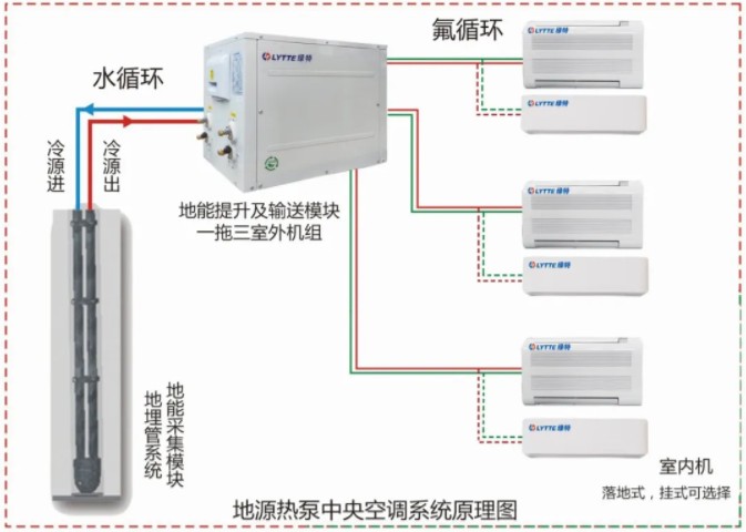 地源熱泵熱風機是利用淺層地能通過地埋管吸收土壤冷熱源,向房間提供冷熱風的空調(diào)系統(tǒng)。其特點是:一鍵操作,分間控制,節(jié)能省電,零污染,零排放,不怕凍,隨用隨開,滿足了廣大農(nóng)村農(nóng)戶的個性化需求,是農(nóng)村煤改電節(jié)能產(chǎn)品之一。
